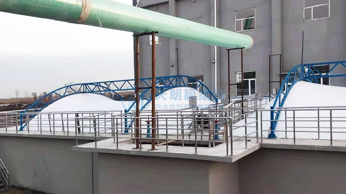 降低運營成本:雙膜密封罩可防止工業水曝氣池加蓋后,夏季水溫升高,危及微生物生存環境;亦可用于市政污水冬季保溫,降低水處理費用。